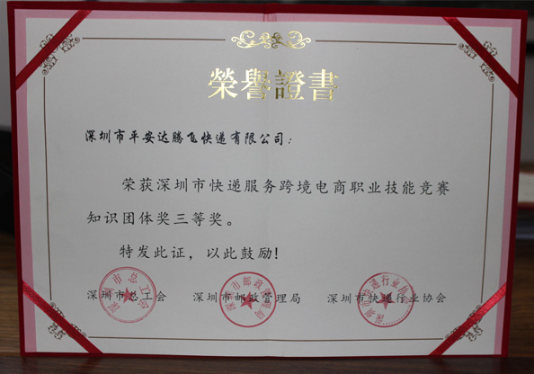 深圳市快遞服務跨境電商職業技能競賽團體獎證書