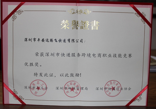 深圳市快遞服務跨境電商職業技能競賽優勝獎證書