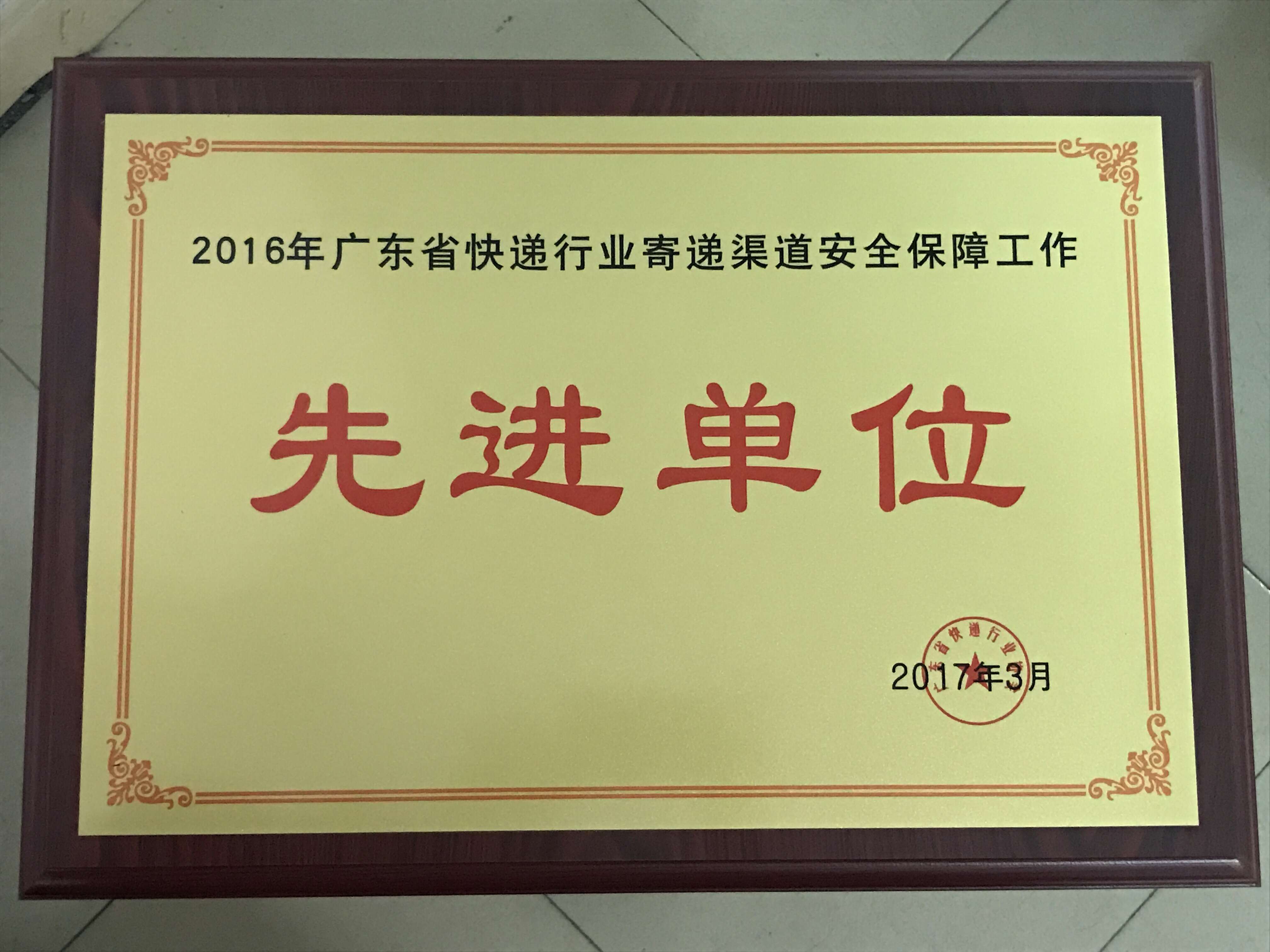 2016年廣東省快遞行業寄遞安全先進單位