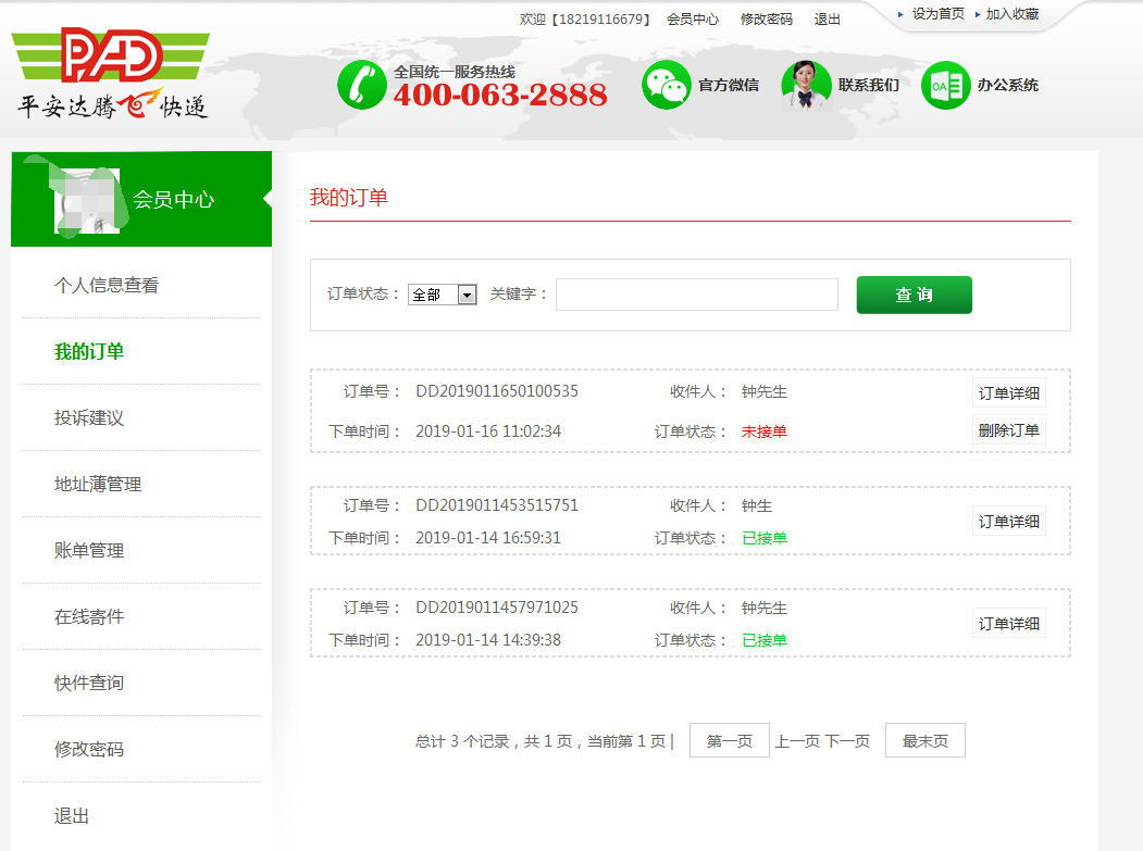 寰俊浼氬憳鍗囩駭鍟︼紝鍏蟲敞騫沖畨杈捐吘椋炲揩閫掑畼寰紝騫舵垚涓哄井淇′細鍛橈紝涓嬪崟銆佹煡浠躲€佸湴鍧€綈褲€佽處鍗曠鐞?/span>銆佹姇璇夊緩璁?/span>銆?/span>鍒頒歡銆佹淳浠躲€佺鏀?/span>淇℃伅鎺ㄩ€侊紝涓€鏈哄湪鎵嬶紝灝辮兘瑙e喅騫垮ぇ瀹㈡埛鐨勬墍鏈夐棶棰橈紝浣犺瘯浜嗗悧錛?/span>